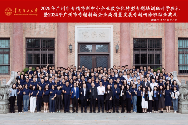 11月1日,2025年广州市专精特新中小型企业数字化转型专题培训班开学典礼暨2024年广州市专精特新企业高质量发展专题研修班结业典礼在我校顺利举行,广州市专精特新企业约160位学员参加本次活动。学院院长苏秋斌,广州市工业和信息化局副局长、市民营经济和中小企业局局长黄符伟,广州市工业和信息化局创业创新处处长肖泽,广州市中小企业专精特新发展促进会副秘书长汪赟娟,广州市工业和信息化局创业创新处助理经济师曾静等出席活动。