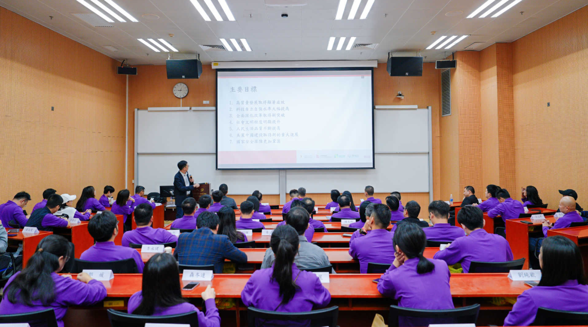 11月15日,第三期“新越商”青年企业家培训班56名学员前往澳门大学横琴校区进行参观研学活动,学员们深入了解澳门大学的校园文化、学术研究以及科技创新成果,聆听由澳门大学工商管理学院金融及商业经济系副系主任、副教授李振国主讲的《党的二十届四中全会精神解读》课程。